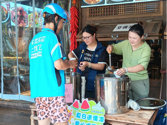 7月22日,成都车驾大暑节气,社区送清驶成都高新区合作街道天骄西路社区携手合作社区卫生服务中心
